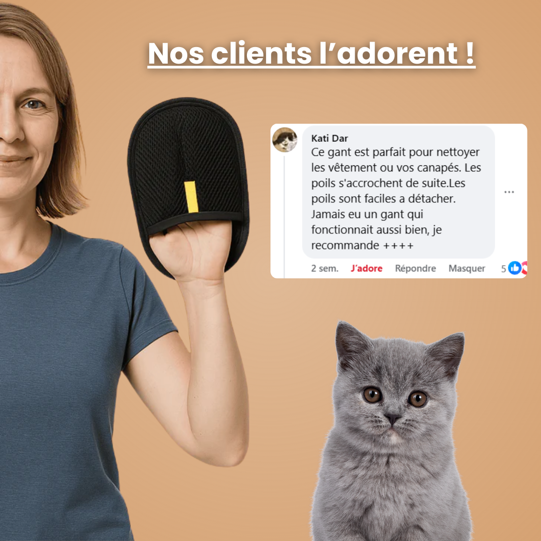 Contrairement aux rouleaux adhésifs ou aux brosses classiques, vous n’avez besoin ni de recharge, ni de colle, ni d’électricité. Notre gant est lavable, réutilisable à l’infini, et élimine les poils dès le premier passage — rapidement, efficacement, et sans laisser de traces.